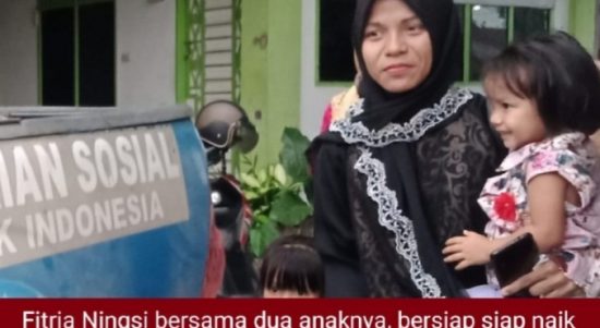 BIREUEN–Fitria Ningsi (23) dan kedua anaknya yang telantar di Kabupaten Bireuen, Provinsi Aceh, Sabtu hari ini (29/5/2021) dipulangkan ke tempat asalnya Nusa
