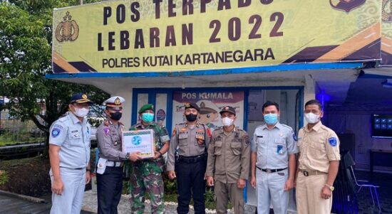SAMARINDA–Memulai Operasi Ketupat Mahakam 2022 di Kabupaten Kutai Kartanegara, PT Jasa Raharja Perwakilan Samarinda bersama Satlantas Polres Kukar melaksanakan kegiatan berbagi paket