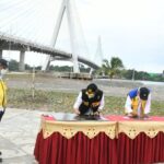 JAKARTA – Menteri Keuangan (Menkeu) Sri Mulyani Indrawati menandatangani prasasti penanda aset proyek Jembatan Pulau Balang. Jembatan ini memiliki fungsi sentral sebagai