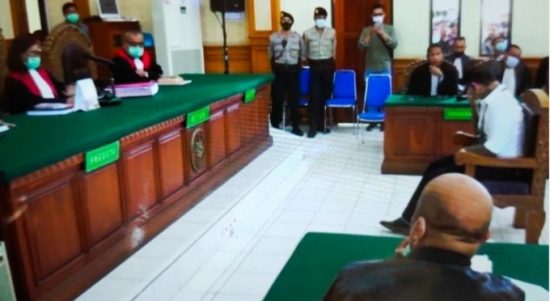 BALI – I Gede Ari Astina alias Jerinx yang menjadi terdakwa dalam kasus ujaran kebencian terhadap Ikatan Dokter Indonesia (IDI), dalam sidang
