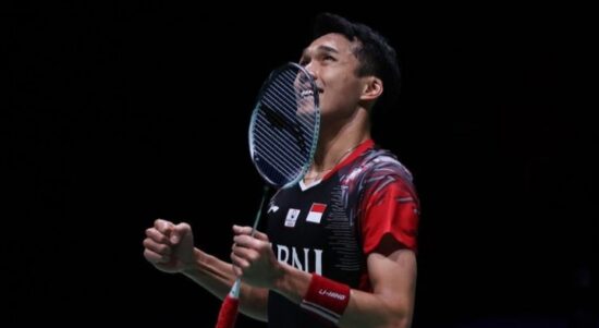 Ekspresi Jonatan Christie (Foto instagram @yonexswissopen) JAKARTA– Pebulu tangkis Indonesia Jonatan Christie berhasil menjuarai nomor tunggal putra Swiss Open 2022 seusai mengalahkan