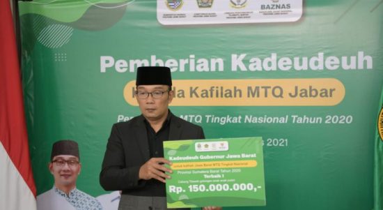 Gubernur Jabar Berikan ‘Kadeudeuh’ kepada Kafilah Juara MTQ Nasional di Padang