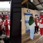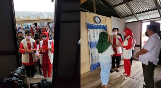 MARELAN-Meski air tampak pasang dan cuaca sedikit gerimis Kahiyang Ayu Boby Afif Nasution Ibu Walikota Medan Ketua Tim Penggerak PKK tampak bersemangat