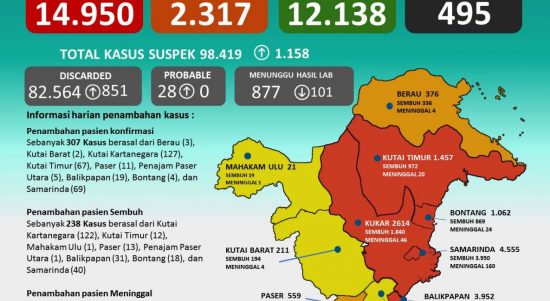 JAKARTA – Kalimantan Timur masuk daftar 13 provinsi prioritas penanganan Covid-19 di Indonesia. Daftar dibuat pemerintah menyusul provinsi-provinsi tersebut terus mengalami fluktuasi