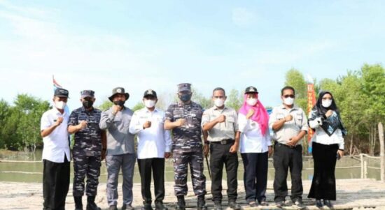 SERGAI–Bupati Serdang Bedagai (Sergai) H Darma Wijaya mengikuti kegiatan Tebar Benih Kerang Kampung Bahari Nusantara yang digelar di Desa Bagan Kuala, Kecamatan