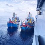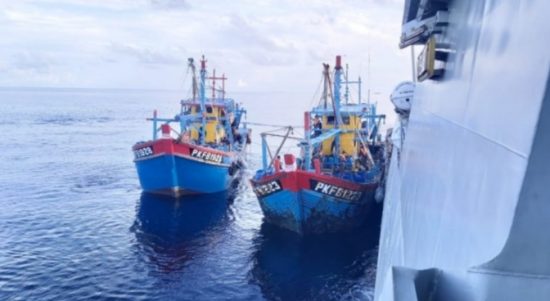 BELAWAN — KRI Kerambit-627 psfs Minggu (8/11/2020) pagi menangkaptiga kapal ikan asing (KIA), PKFB 1223, PKFB 1928, dan PKFB 1921 asal Malaysia
