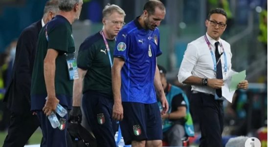ROMA–Kapten tim nasional Italia Giorgio Chiellini terpaksa meninggalkan lapangan karena mengalami cedera pada babak pertama pertandingan Piala Eropa 2020 melawan Swiss di