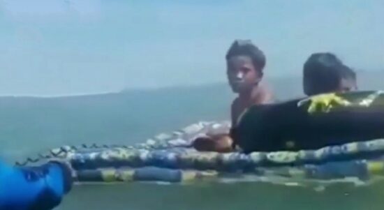 TEGAL – Asyik bermain di atas kasur bekas yang mengapung, tiga anak kecil di Kota Tegal, Jawa Tengah, hanyut terbawa arus hingga