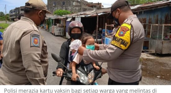 TANJUNGPINANG–Berbagai pihak terus mengoptimalkan vaksinasi. Termasuk di Kota Tanjungpinang. Seperti dilakukan Polres Tanjungpinang yang menggelar razia sertifikat atau kartu vaksin di kawasan