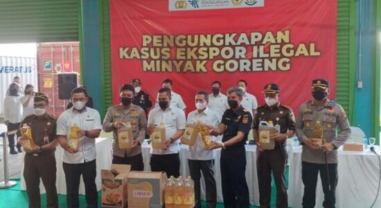 Kemendag bersama Bea Cukai dan Satgas Pangan menggagalkan ekspor minyak goreng ke Timor Leste. SURABAYA–Komitmen menjaga kebijakan  pelarangan ekspor minyak goreng ditunjukkan