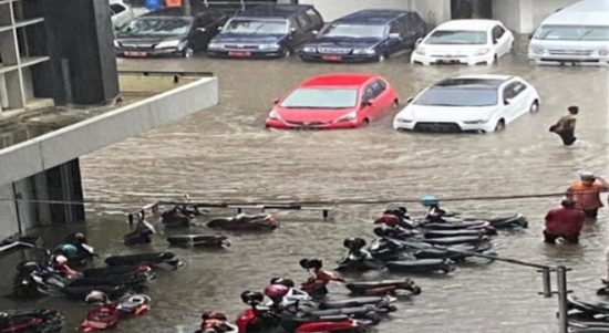SEMARANG — Kompleks kantor Gubernur Jawa Tengah di Kota Semarang sekonyong-konyong kebanjiran, Selasa (23/2/2021) sore.Sejumlah motor dan mobil terendam mulai ban hingga