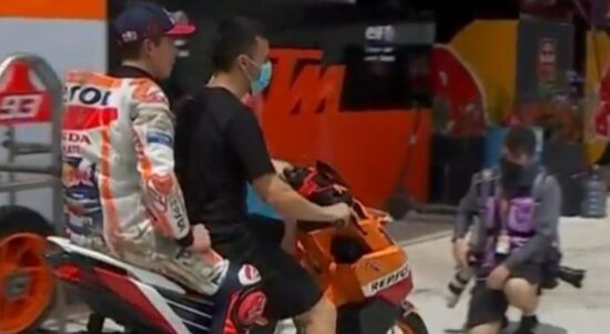 Marc Marquez dibawa ke rumah sakit setelah terjatuh di Sirluit Mandalika. (Instagram @marcmarquezindo) JAKARTA–Juara MotoGP enam kali Marc Marquez bakal absen pada