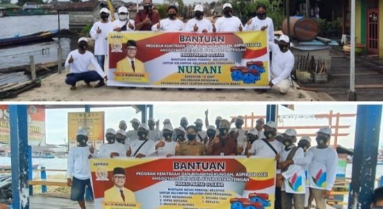PANGKALAN BUN–Puluhan mesin kelotok dari program kemitraan dan bina lingkungan, aspirasi dari Mukhtarudin, Anggota DPR RI Komisi Vll Dapil Kalimantan Tengah, diberikan