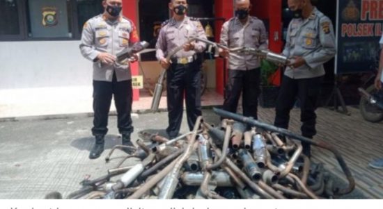 PALEMBANG–Sebanyak 113 knalpot brong dan racing yang membuat gaduh atau pekak telinga warga diamankan Polsek Ilir Timur (IT) I Palembang. Ke-113 unit