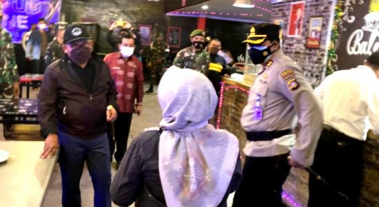 GORONTALO – Wali Kota Gorontalo Marten Taha bersama Kapolres, Dandim 1304/Gorontalo dan jajaran melakukan patroli di sejumlah titik keramaian, kafe dan restoran