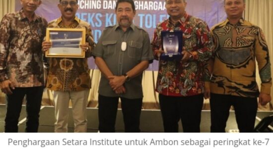 JAKARTA– Kota Kota Ambon masuk peringkat ke-7, kota toleransi tertinggi di Indonesia 2021 versi Setara Institut. Ambon membawa Provinsi Maluku dalam 10 besar penerima penghargaan tersebut.