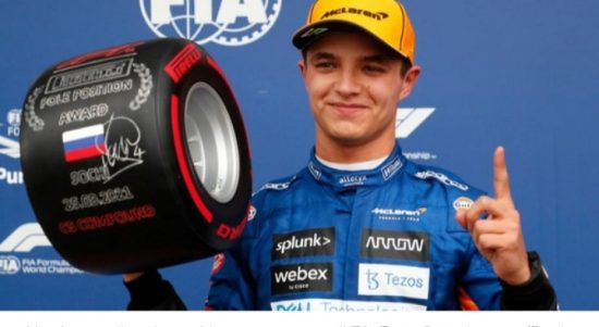 JAKARTA–Pebalap McLaren Lando Norris meraih pole position perdana dalam kariernya setelah tampil tercepat di babak kualifikasi Grand Prix Rusia dengan kondisi trek