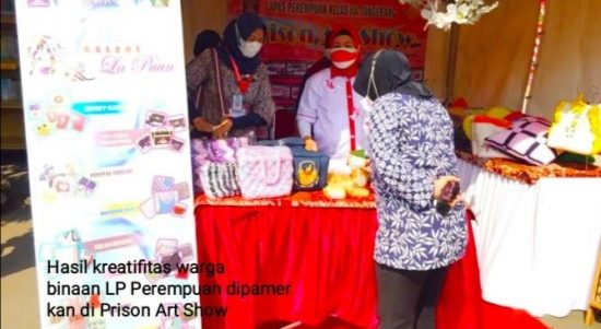TANGERANG – Lembaga Pemasyarakatan (Lapas) Perempuan Kelas IIA Tangerang menunjukkan kreatifitas warga binaan dengan membuka stand pada event Prison Art Show di