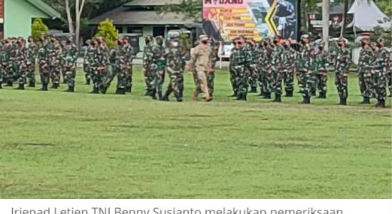 BALIKPAPAN–Irjenad Letjen TNI Benny Susianto memimpin Upacara Penutupan Latihan Bersama (Latma) Garuda Shield Ke-15 yang digelar di Amborawang di Lapangan Markas Yonif