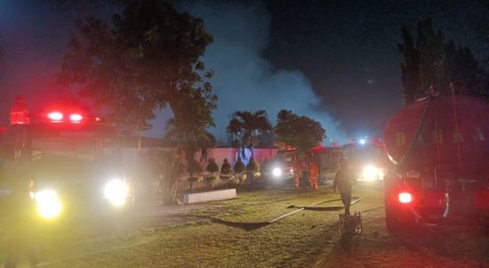 KOTA TANGERANG—BPBD Kota Tangerang menurunkan 12 unit kendaraan pemadam kebakaran di lokasi Lembaga Pemasyarakatan (Lapas) Kelas I Tangerang, Kota Tangerang, Banten. Menurut