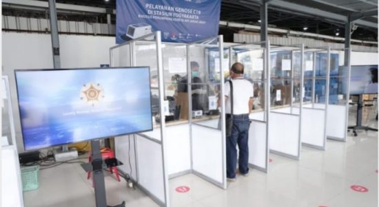 YOGYAKARTA – GeNose C-19 mulai digunakan sebagai alternatif pemeriksaan kesehatan yang menjadi syarat perjalanan penumpang kereta api jarak jauh di Stasiun Tugu,