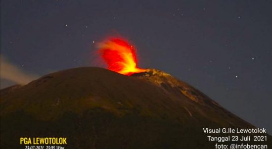KUPANG – Gunung Ile Lewotolok di Kabupaten Lembata, Provinsi Nusa Tenggara Timur kembali menunjukkan aktivitasnya, Rabu (14/7/2021). Pusat Vulkanologi dan Mitigasi Bencana