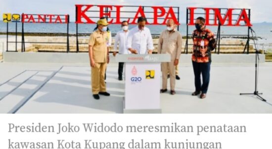 KUPANG–Presiden Joko Widodo meresmikan tiga lokasi taman wisata dan kuliner di Pantai Kelapa Lima Kota Kupang, NTT yang dibangun oleh Kementerian Pekerjaan