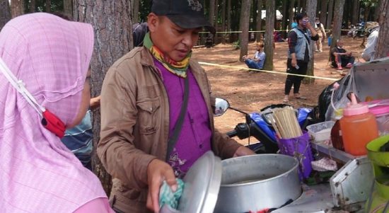 CIANJUR – Gebyar vakinasi di Wana Wisata Poklan Desa Haurwangi, Kecamatan Haurwangi, Kabupaten Cianjur, Jawa Barat Rabu (29/9/21) membuat para pedagang meraup