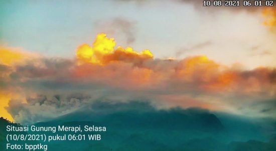 YOGYAKARTA – Gunung Merapi terus menunjukkan peningkatan aktivitas vulkaniknya. Selasa (10/8/2021) kembali terjadi guguran awan panas yang meluncur ke arah barat daya.