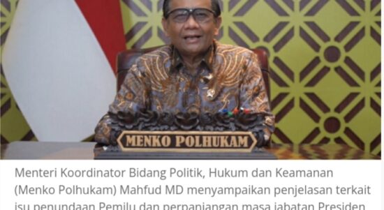 JAKARTA–Menko Polhukam Mahfud MD menyebut Presiden Jokowi sudah menyetujui pemungutan suara Pemilu dan Pilpres digelar pada 14 Februari 2024. Menurutnya, tanggal tersebut
