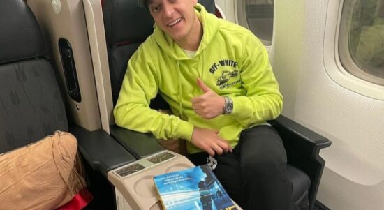 Mesut Ozil di kabin pesawat dalam perjalanan ke Jakarta. (Foto: Instagram) JAKARTA–Pesepak bola dunia, Mesut Ozil, lebih memilih pergi ke masjid daripada