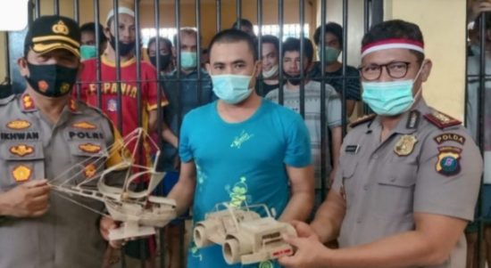BATUBARA — Dingin ruang sel tidak mengerutkan minat Tomi dan Andi berkarya. Dengan menggunakan kertas bungkus nasi dan nasi sisa, kedua tahanan