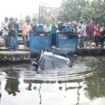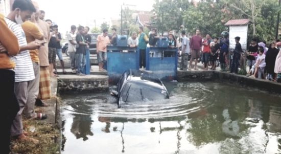 POLMAN- Sebuah mobil bernomor polisi DD 1325 OH, lompat ke saluran irigasi di Kabupaten Polewali Mandar. Diduga, mobil itu sampai berenang lantaran