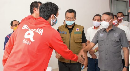 MATARAM – Gubernur NTB Dr H Zulkieflimansyah, SE, MSc mendampingi Menteri Pemuda dan Olahraga Zainudin Amali dalam acara Penyerahan Alat Pelindung Diri