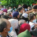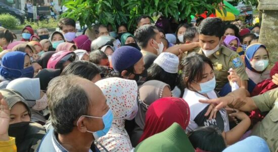 MAGETAN–Ribuan warga Kabupaten Magetan Jawa Timur, menyerbu Kantor UPT Bapenda Jatim, Kabupaten Magetan, untuk mendapatkan minyak goreng murah, Selasa (15/2/2022). Mereka rela