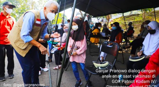 SEMARANG – Gubernur Jawa Tengah Ganjar Pranowo, meninjau Vaksinasi bagi anak usia 12-17 tahun dalam rangka Hari Anak Nasional tahun 2021 di