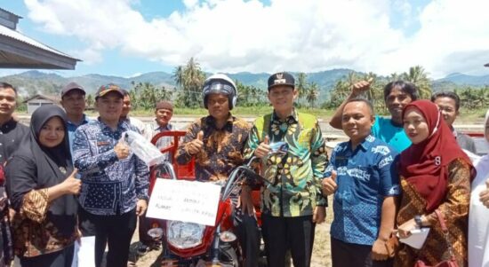 PASAMAN— Wakil Bupati Pasaman Sabar AS menyerahkan bantuan untuk 10 kelompok pembudidaya ikan (pokdakan) dari Kementerian Kelautan-Perikanan RI di wilayah Kecamatan Rao,