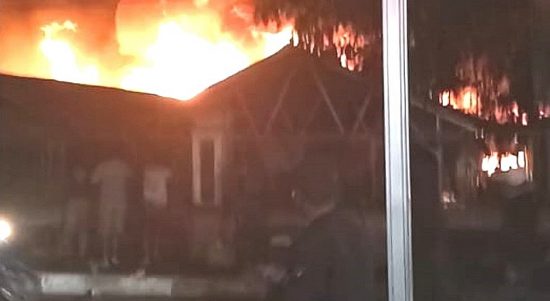 GARUT – Pasar darurat di Alun-alun Leles kabupaten Garut terbakar, Minggu (20/6/2021) malam. Ratusan jongko yang terbuat dari bangunan semi permanen tersebut