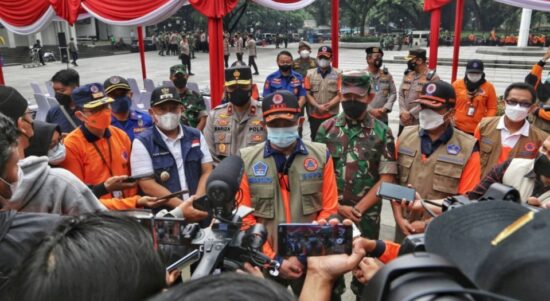 BANDUNG – Badan Nasional Penanggulangan Bencana (BNPB), bersama Pemerintah Kota Bandung membagikan masker di 20 lokasi, Sabtu (19/2/2022). Ke-20 titik tersebut ialah,
