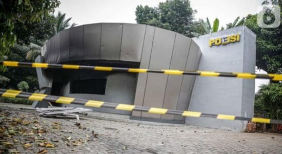 Pos polisi subsektor Pejompongan pasca dibakar. (Liputan6.com/Faizal Fanani) JAKARTA–Polisi berhasil menangkap sejumlah orang yang diduga dalang pembakaran pos polisi di Jalan Pejompongan