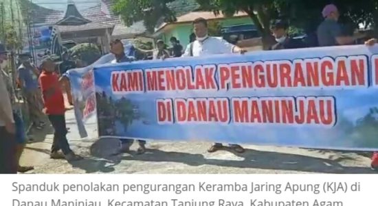 TANJUNG RAYA–Puluhan petani pemilik keramba jaring apung (KJA) di kawasan Danau Maninjau, Kecamatan Tanjung Raya, Kabupaten Agam, Sumatera Barat, Senin (14/6/2021), mendatangi