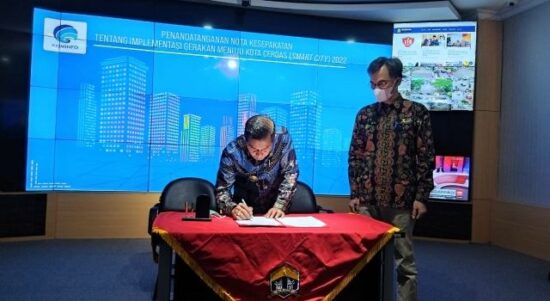 SERANG–Penandatanganan nota kesepakatan tentang implementasi gerakan menuju kota cerdas atau smart city telah dilakukan oleh Pemerintah Kota (Pemkot) Serang, Kamis (21/04/2022). Melalui