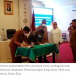 AMBON–Pemerintah Kota (Pemkot) Ambon dan DPRD Kota Ambon bersama Lembaga Rumah Generasi melakukan penandatanganan kerja sama (PKS) pelaksanaan program kemitraan Australia-Indonesia Menuju Masyarakat Inklusif (inklusi)