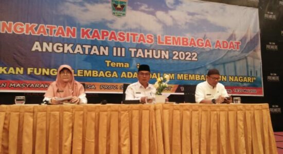 PADANG–Pemprov Sumbar melalui Dinas Pemberdayaan Masyarakat dan Desa (PMD) berkomitmen untuk memperkuat lembaga adat di nagari, salah satunya dengan menambah wawasan dan