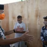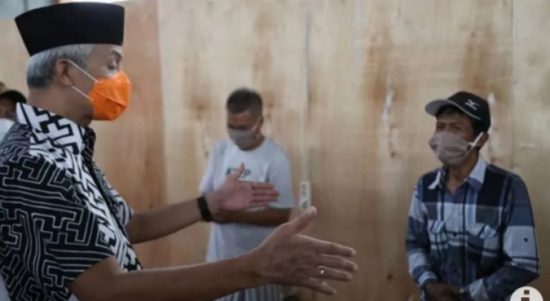 PURWOKERTO–Gubernur Jawa Tengah Ganjar Pranowo dalam kunjungan kerja ke Kabupaten Banyumas menemui dua pemudik yang dikarantina di kompleks Gelanggang Olahraga (GOR) Satria