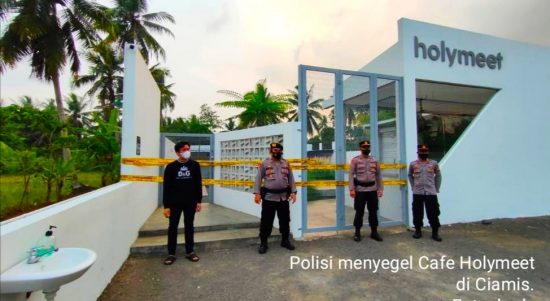 CIAMIS – Cafe Holymeet di Kecamatan Cijeungjing Kabupaten Ciamis, Jaw Barat, disegel oleh personel gabungan satuan fungsi Polres Ciamis Polda Jabar. Penyegelan