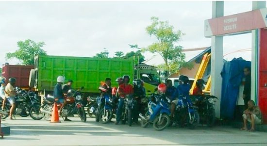 TANJUNG SELOR – Antrean kendaraan di Stasiun Pengisian Bahan Bakar Umum (SPBU) di Jalan Sengkawit, Tanjung Selor, kembali terjadi sehingga mengganggu arus