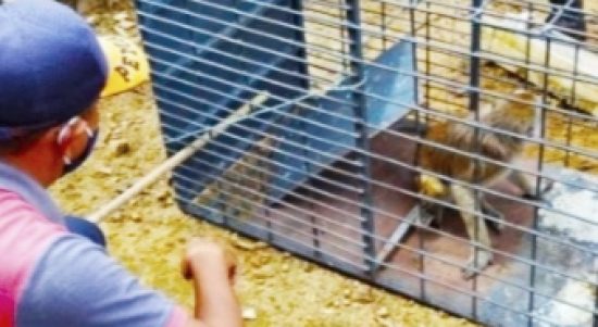 SAMARINDA – Satu dari tiga ekor monyet liar yang menjarah di permukiman warga di Jalan Wahid Hasyim II, Perum TVRI Graha Asri,
