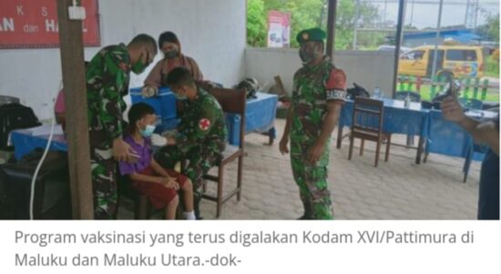Ambon –Kodam XVI/ Pattimura melaksanakan program percepatan vaksinasi di seluruh Maluku dan Maluku Utara, Kamis (24/2/2022). Vaksinasi ini dilakukan serentak di seluruh