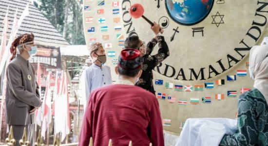 CIAMIS – Bupati Ciamis Herdiat Sunarya menghadiri acara peringatan Hari Ulang Tahun Gong Perdamaian Dunia ke-12 di objek wisata budaya Karangkamulian Kecamatan